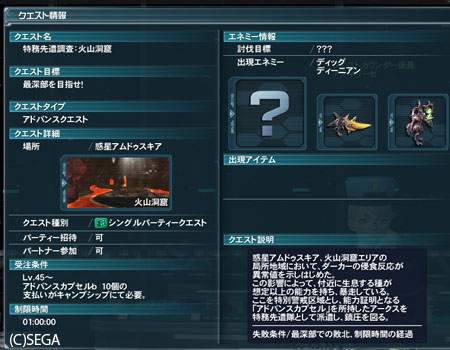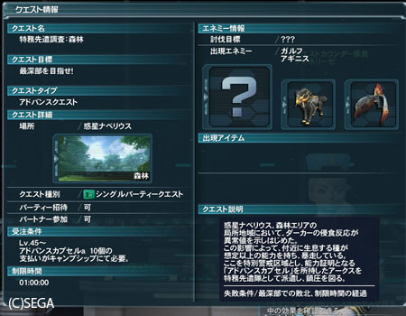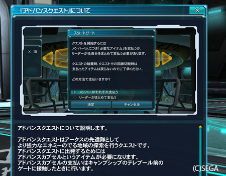 そのアドバンスクエストですが、もちろんアークスクエストみたいに気軽に受けることなどできません。