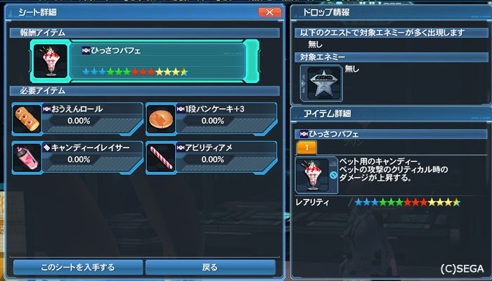 本日の放置シート ひっさつパフェのシート