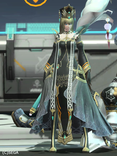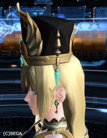 タクリディアローブ影にタクリディアハット、タクリディアイヤリングのフルセットです。