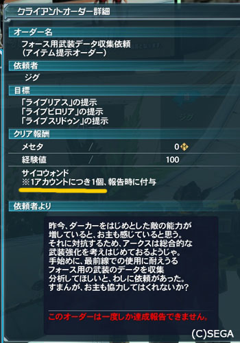 エルダー産のレア武器が手に入るという新オーダーがコチラ