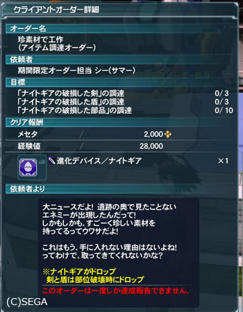 それに関係するオーダーもシーちゃんから受けられるようになっているんだけれど
