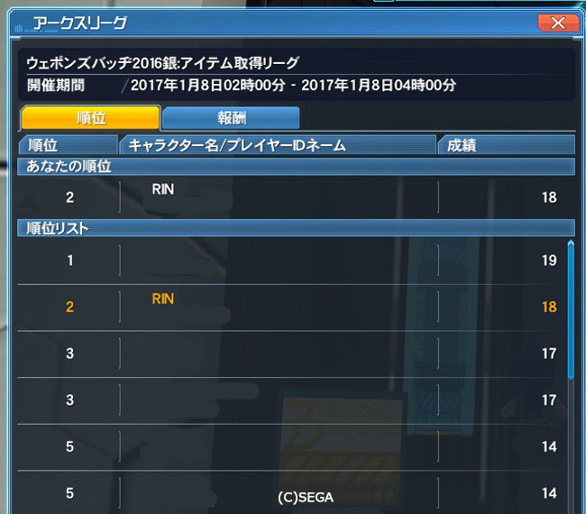 ところで昨日の深夜、デイリーを片付けていたらアークスリーグが久々に開催されていることに気づき