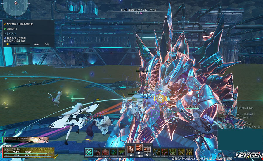 進行型で、8人で担当の属性の敵を倒す協力プレイな感じですが