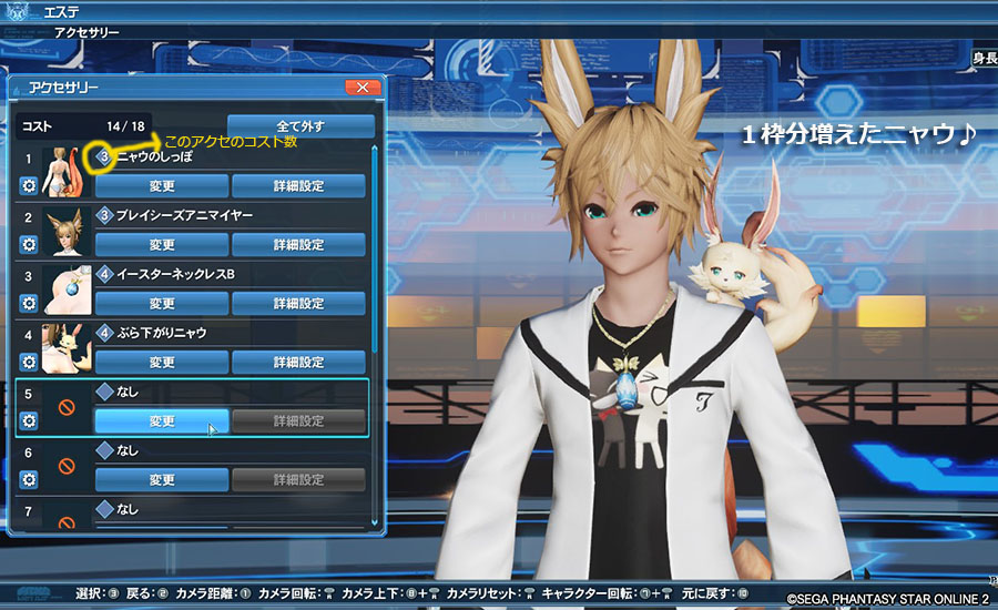 アクセもコスト上限の18を使ってめいっぱい装着!