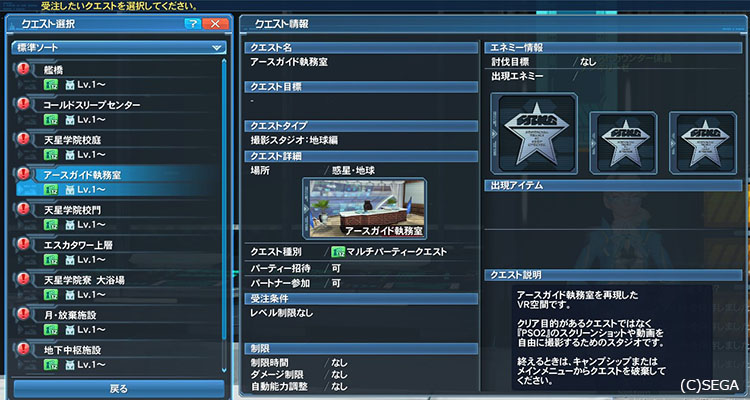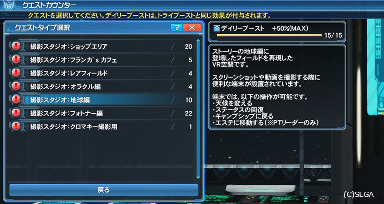 撮影スタジオはクエスト扱いになるので、クエストカウンターから受注します。