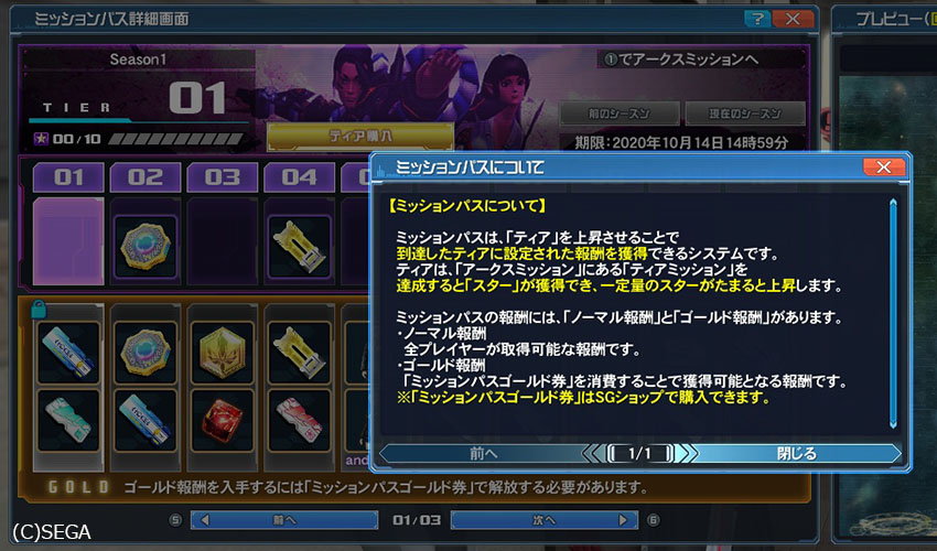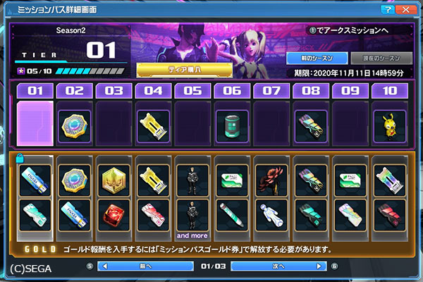 鍵のかかっている下段のアイテムに関しては、SGショップでミッションパスゴールド券を購入。