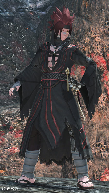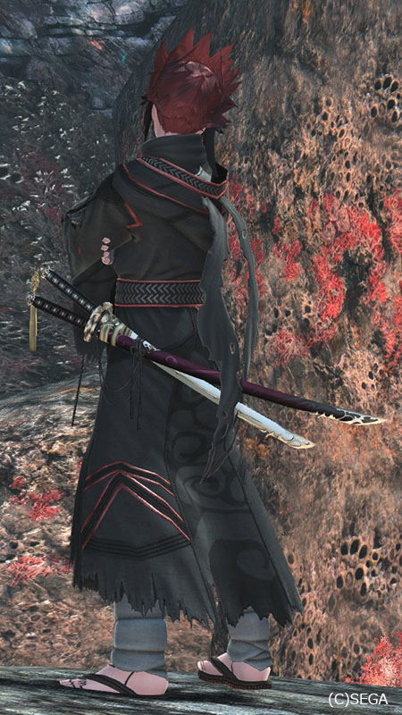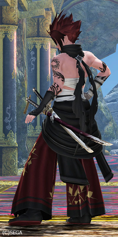 抜刀時には、もやもやするエフェクトを纏うなかなかに闇な武器迷彩でお気に入り。
