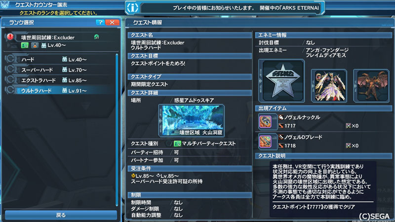 幻創種、アムチエネミー全般、魔物種、ダーカー、龍族、などのザコが出現します。