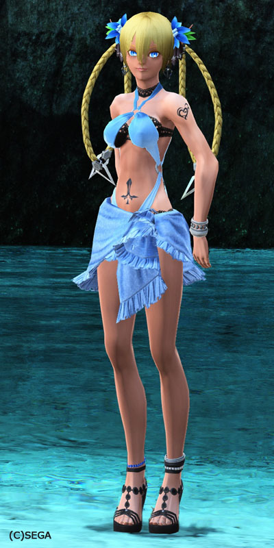 新色のフリルワンピです。日焼け肌にも合う爽やかなスカイブルーでかわいッスね!
