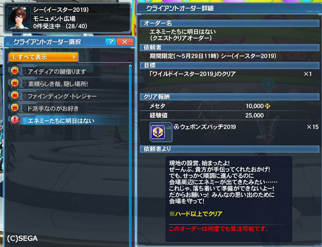 シーちゃんには、この緊急のクリアを目標にするオーダーが発生します。