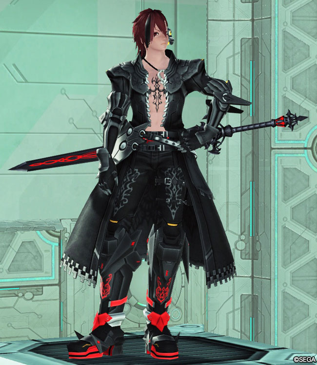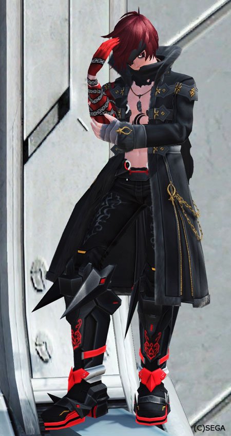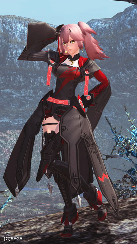 シャルフヴィント[Ou]、シャルフヴィント紅[Ba]アクセ:カラーサイドエクステ黒、イヤーセットアンテナB、タイラーのペンダント、アルディナレッグポーチB