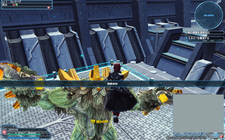 最後は、出現するザコとロックベアを自由に攻撃して撃破すれば練習クエストはクリアとなります。