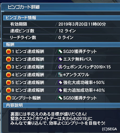 ビンゴカードの攻略期限も20日までです。