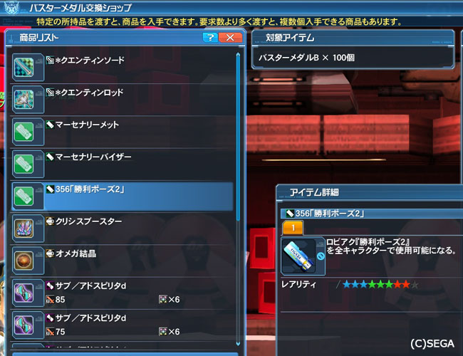 esのウェポノイドキャラの服やアクセが満載の今回の新スクですが