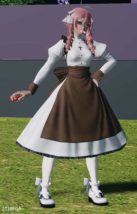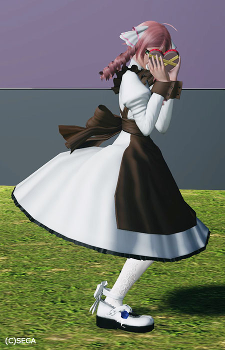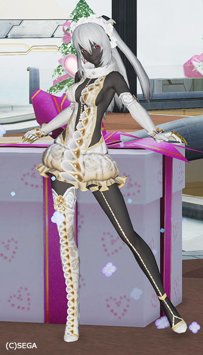 肌が黒いので白いフリルの露出高めのコスでもダイジョブそうだなと。