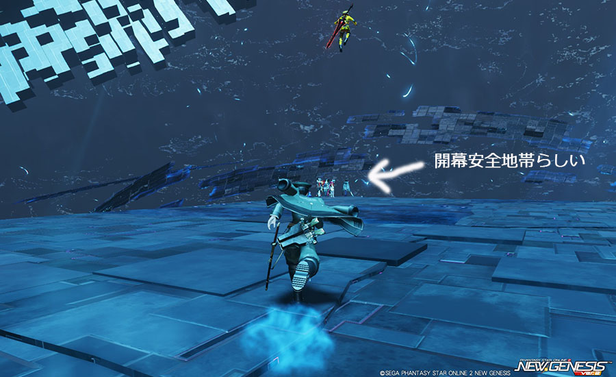 始まる前からフィールドの端に固まるアークス。