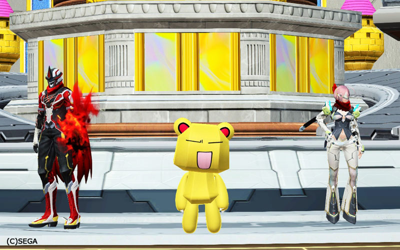 そして、キャラコン優勝者の2名もNPCとなってポリタンと共にロビーに立ってますね。