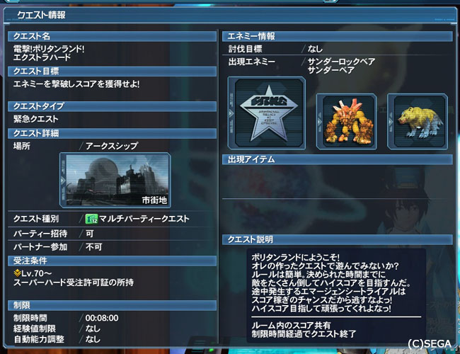 ・緊急クエストの 『電撃!ポリタンランド!』のドロップ&クリア報酬