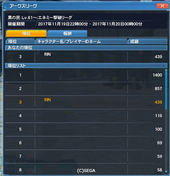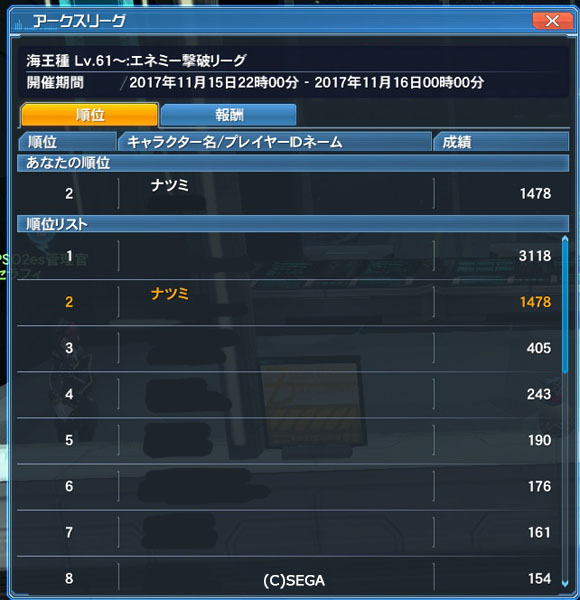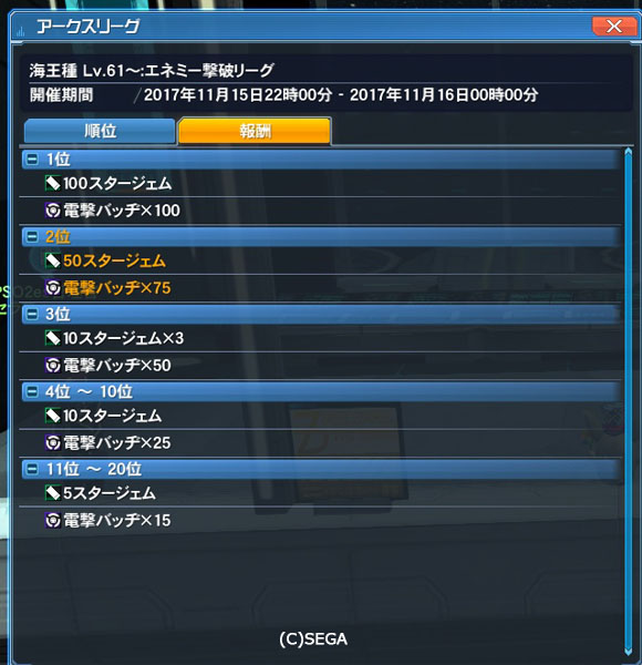 ・期間中に開催予定のアークスリーグの報酬