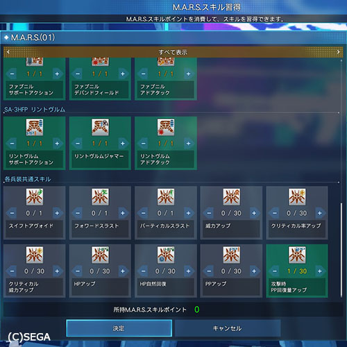 上から順に全て振っていくと、攻撃系の分は全部埋まる感じですね。