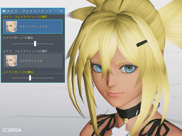 メイク:キャットアイシャドウ、スクエアリップ/B