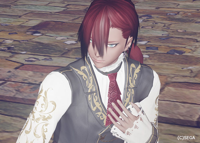 アクセ:甲斐田晴のピアス、下げ髪ウィッグ短、ジャスパーCのペンダント、艶武巴飾り刀
